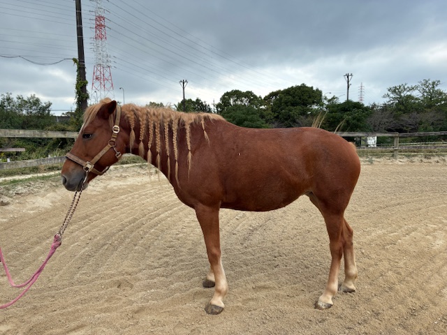 144㎝で大きさはポニーですが、小柄な女性などの大人のレッスンにも出られる子です。